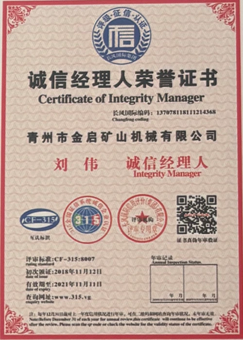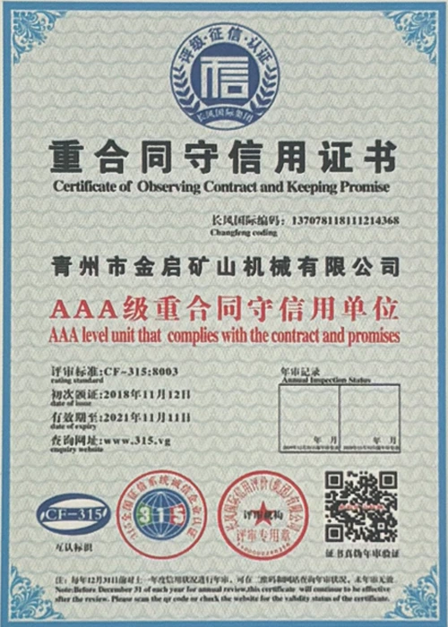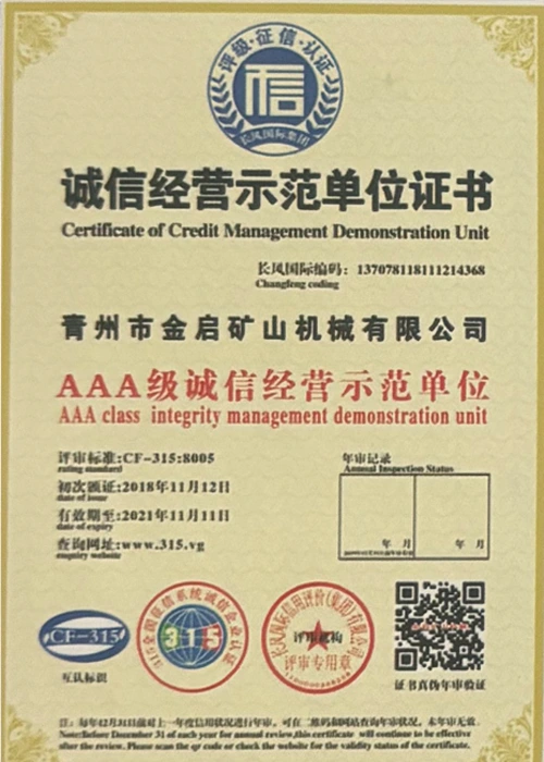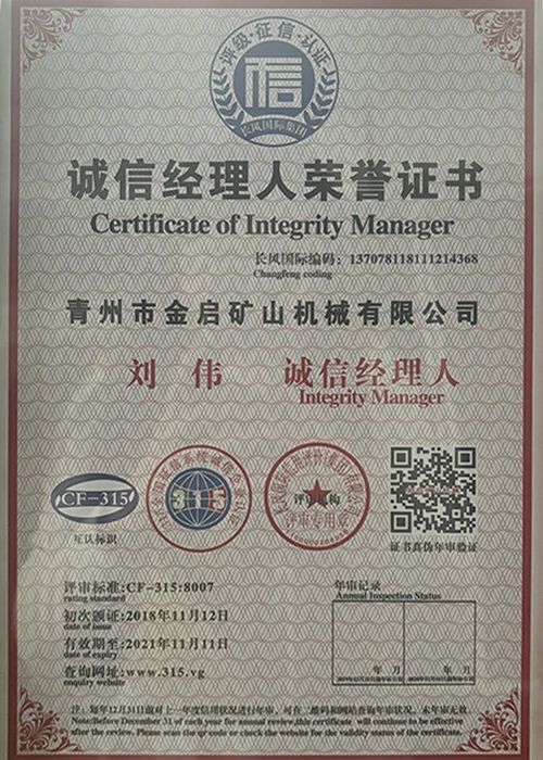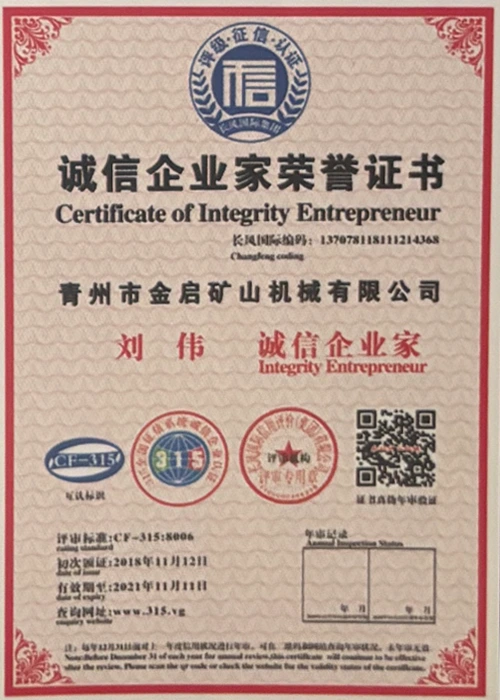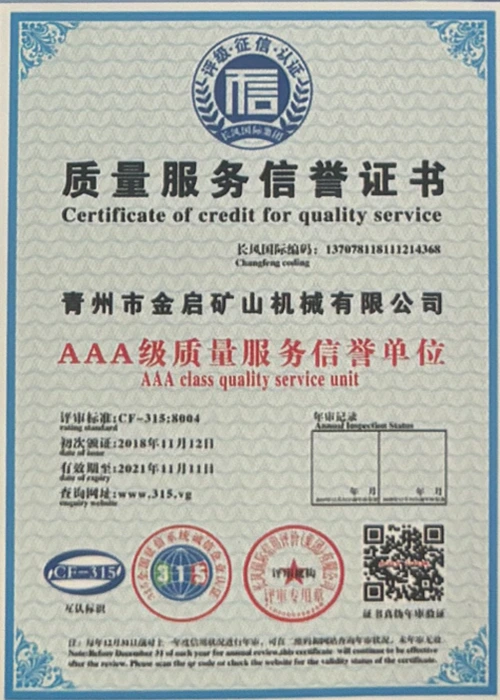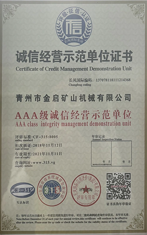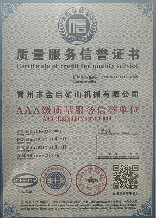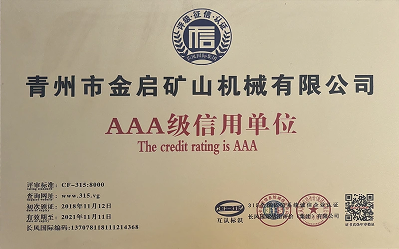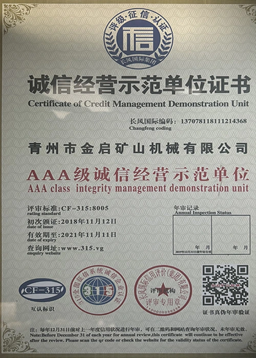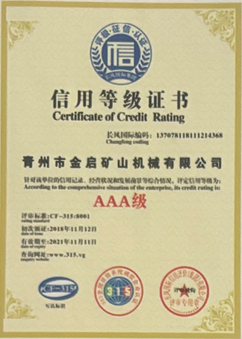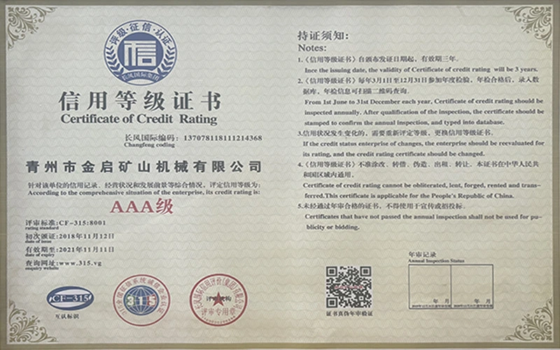 Faatasi ai ma le tele o tausaga o le loloto o le poto masani i le alamanuia, faʻalagolago i le pulea lelei ma le faʻaauauina o tekinolosi faʻafouina, ua maua e le kamupani le tele o agavaa faʻamaonia, tusipasi ma tusi pasi pateni, e aofia ai le ISO ISO quality management system certification, mining product safety certification, faʻapea foʻi ma le tele o pateni fou ma pateni faʻataʻitaʻiga mo meafaigaluega fausaga faʻatekonolosi faʻamalosia ma faʻamalosia le malosi faʻainisinia.